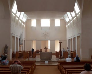 Abbey ChurchThe Abbey church today is a very plain, modern concrete structure. Although the setting was simple, the liturgy was celebrated with great reverence and beauty. Most of the buildings that remain are from the 17th and 18th Century. Currently, 35 monks are resident in Cîteaux, though recently 4 of them left to create a new foundation in Norway.